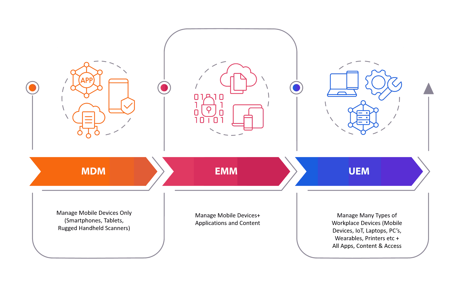 By consolidating mobile and traditional endpoint management, UEM addresses the shortcomings of older systems like MDM and EMM, enabling IT departments to streamline operations, bolster security, and enhance employee productivity across all devices.